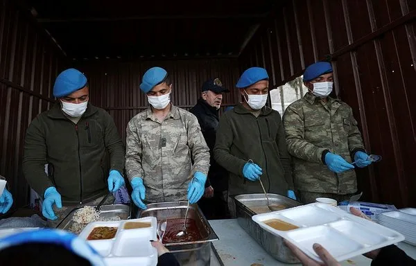 Arama kurtarma dışında Mehmetçik bölgeye 4 milyon 400 bin kumaya sevk etti. 108 mutfakla 14 fırını kurduk. Sıcak yemek olarak 160 bin yemeği günlük olarak çıkardık. 380 bin günlük ekmek üretiyoruz. Şu ana 1 milyon 400 bin sıcak yemek ürettik.